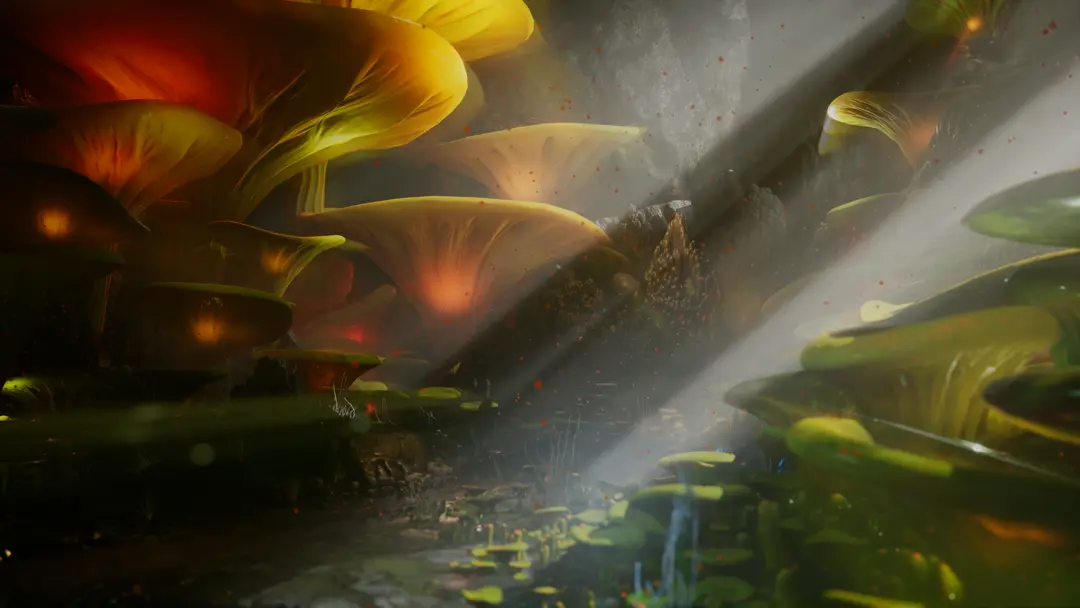 This sprawling mushroom forest can be traversed without ever touching the floor, the mushrooms really like it if you tread on them.