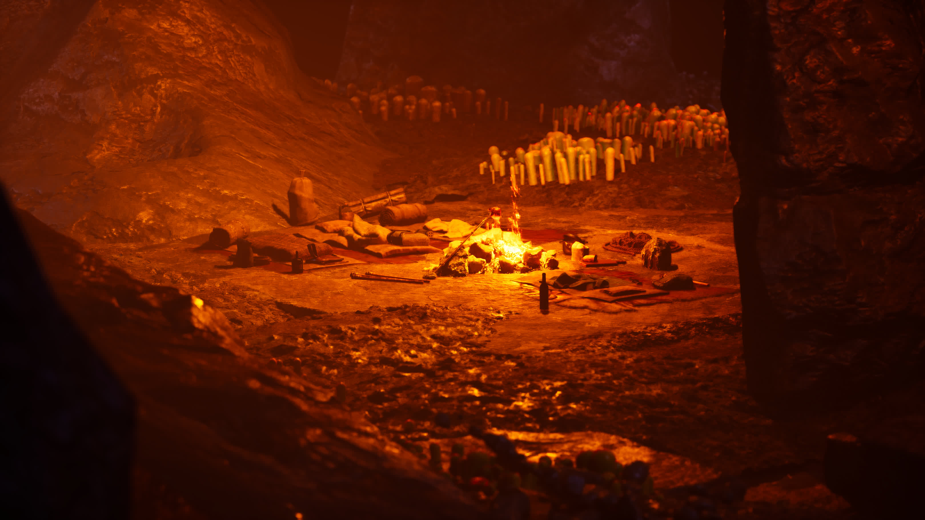 A cave camp, ready to dry your weary bones and not get ambushed.