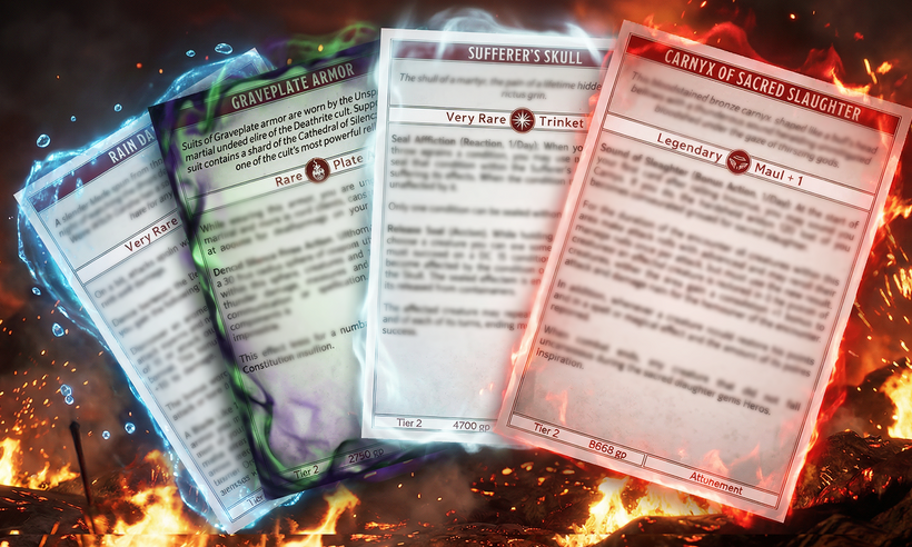 Every Month, we release four homebrew items and homebrew spells, fully integrated for FoundryVTT for you to spice up your gamne!