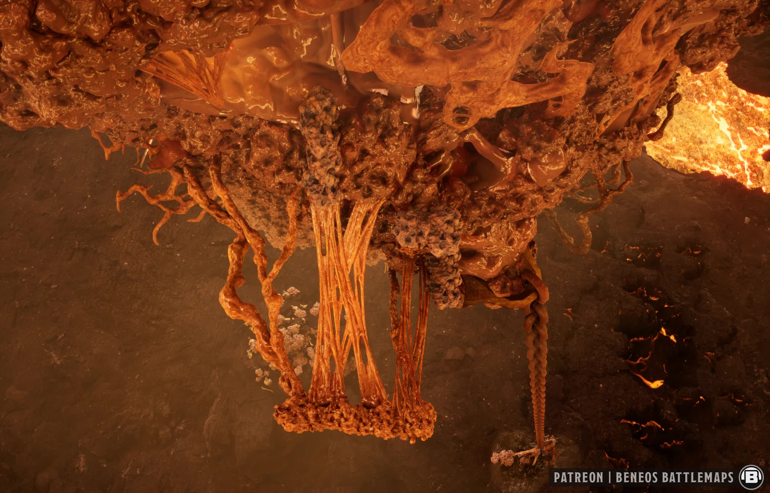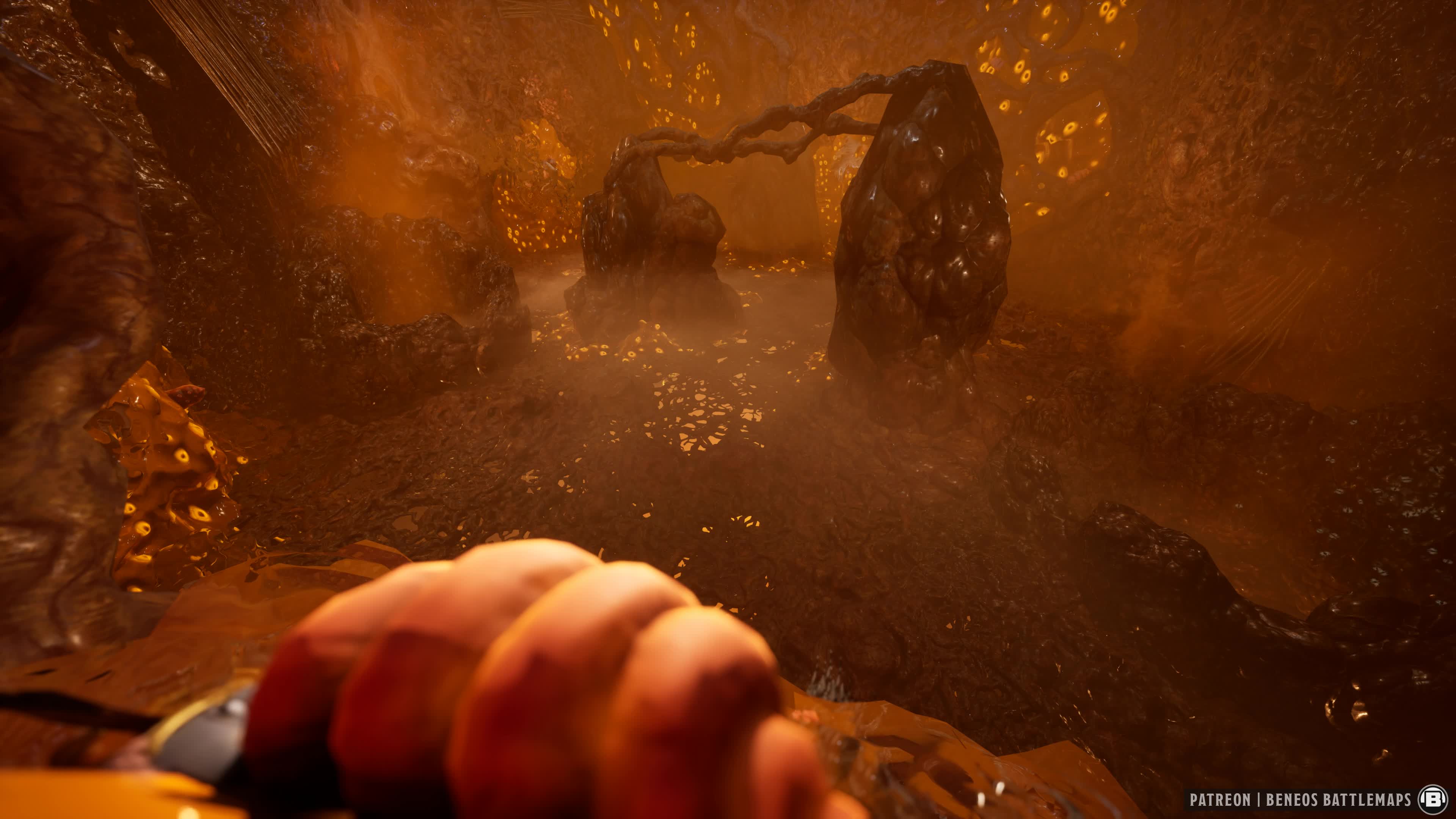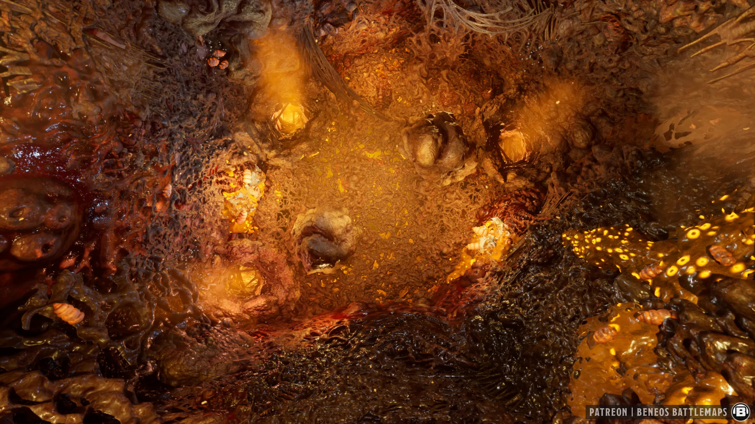 These maps represent the three fleshed out internal levels of the nest, shifting the biome from the infernal aesthetic of the outside towards the nightmarish bio-horror look within.